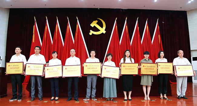 先进单位代表、文学院党总支部书记余国宇,党员标兵代表、生命科学学院教师向福,优秀党支部书记代表、新闻与传播学院影视技术与艺术党支部书记李艳梅先后发言。