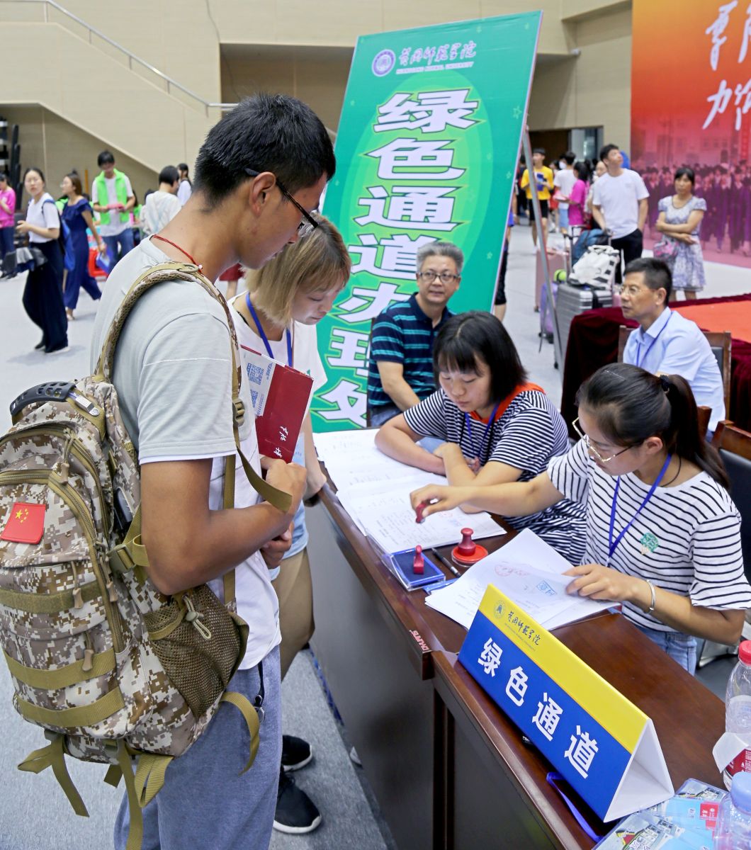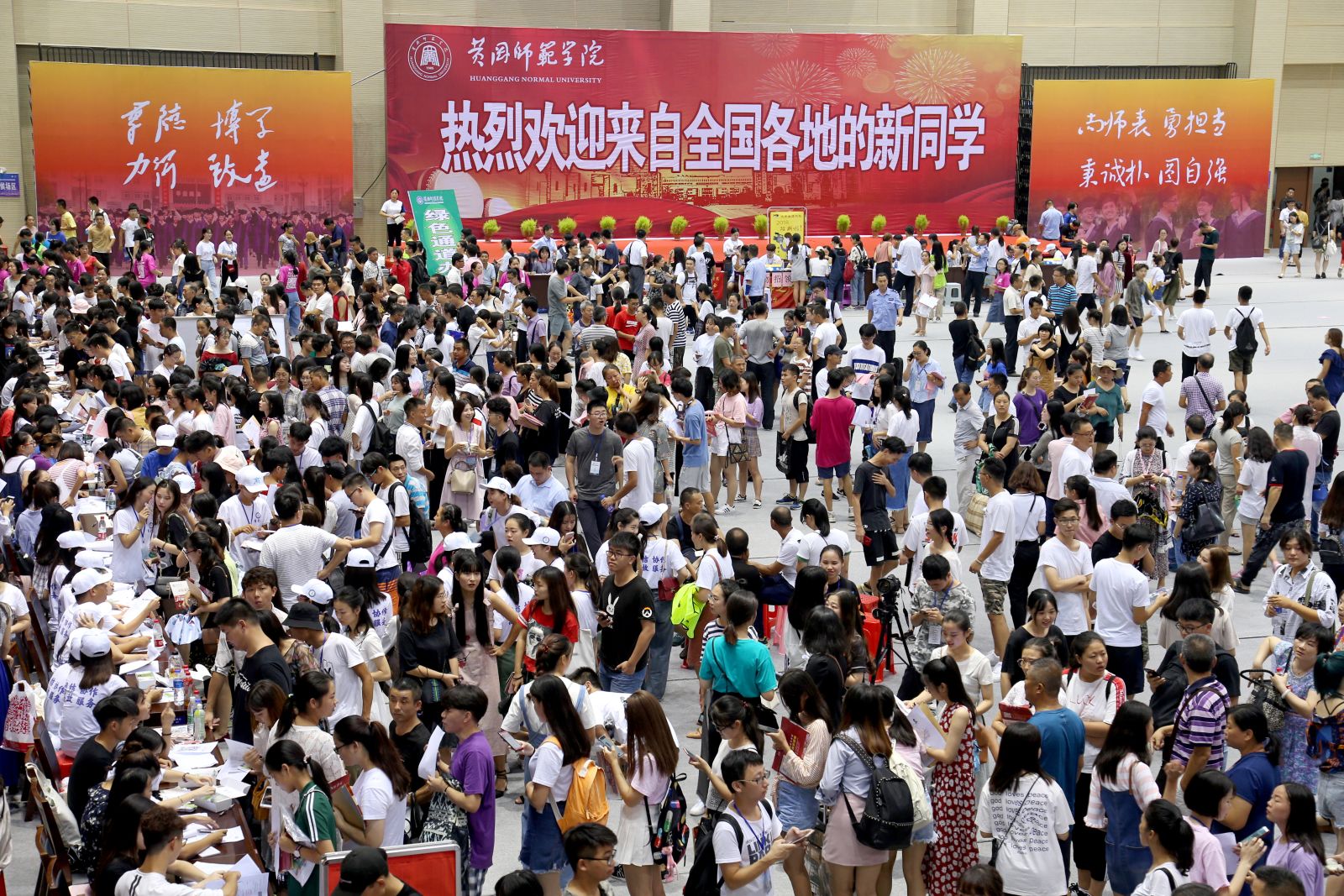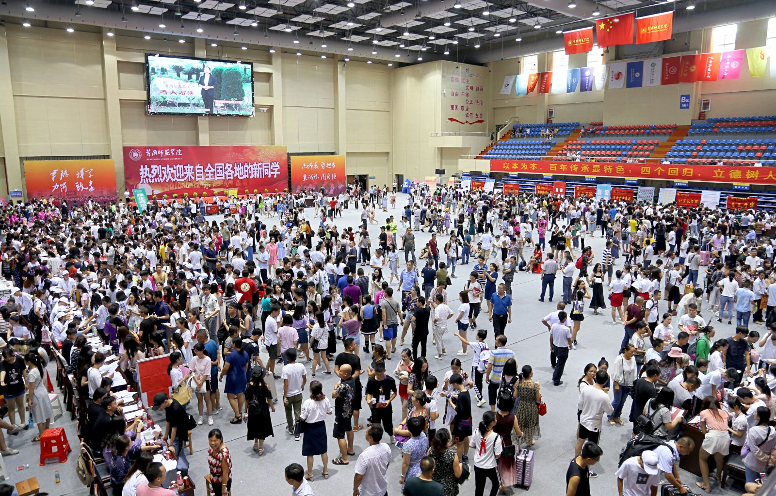 大通社讯(记者 陈琪 李姣)9月4日下午,黄冈师范学院2018级新生迎新工作在体育运动中心圆满落幕。截至4日下午6:30,学校已有5690名新生完成入学报到。