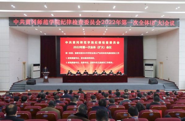王基家作了题为《坚守新时代党的自我革命职责使命为学校事业高质量发展提供坚强的政治保障》的工作报告,从“强化政治意识,践行‘两个维护’更加坚定”“彰显政治担当,政治建设责任持续夯实”“坚守政治定位,全面从严治党要求落实有力”“推进‘清廉黄师’建设,崇廉尚洁氛围有效营造”“一体推进‘三不’,正风肃纪信号持续释放”“坚持守正创新,纪检监察体制改革效能不断提升”“抓实自身建设,队伍履职水平显著提升”等七个方面总结了2021年学校纪检监察工作。关于2022年纪检监察工作,王基家强调,一要做深做实政治监督,坚定不移把“两个确立”转化为坚决做到“两个维护”的高度自觉。二要不断提升巡视问题整改和巡察工作质效,充分发挥党内监督利剑作用。三要保持政治定力,不断实现不敢腐、不能腐、不想腐一体推进战略目标。四要弛而不息纠治“四风”,以作风建设更大成效惠及师生。五要持续深化纪检监察体制改革,构建风清气正的政治生态。六要认真落实政治过硬、本领高强要求,锻造忠诚干净担当的纪检监察铁军。