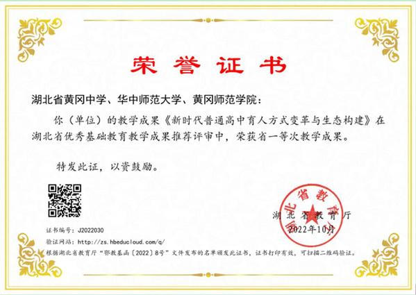 本网讯 近日,省教育厅公布2022年湖北省优秀基础教育教学成果名单,我校3项成果上榜,其中一等奖2项,二等奖1项。