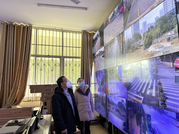 漆昌柱一行先后来到厚德楼及南校区西大门门卫值班室、珠明山教工生活区、引智楼生活区、西校区、胜利街生活区、学校应急总值班室等场所看望一线值守工作人员,道一声“大家辛苦了!”,并检查节日校园安全值守情况。漆昌柱表示,大家春节坚守岗位、履职尽责,确保了学校安全平稳运行,感谢大家的辛勤付出和不辞劳苦。同时强调,值班人员要提高政治站位,认真落实工作要求,扎实做好春节校园安全保卫工作。