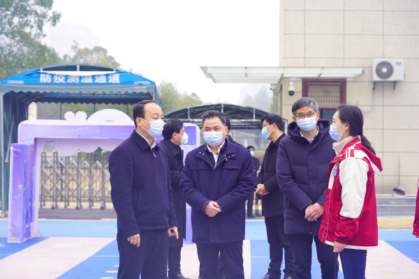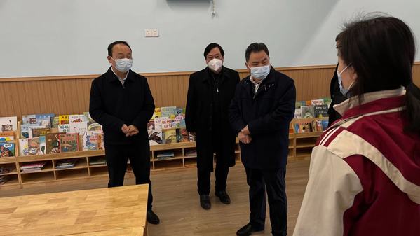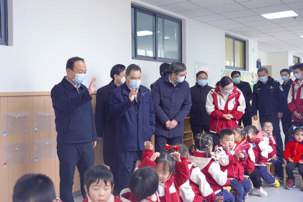 本网讯 2023年2月6日上午,市政府副市长潘国林,市政府副秘书长何峰华,市委政法委负责日常工作副书记向博,市教育局党组书记、局长何兰田等到我校附属幼儿园检查指导开学工作。校党委书记陈向军、党委副书记王基家陪同检查。