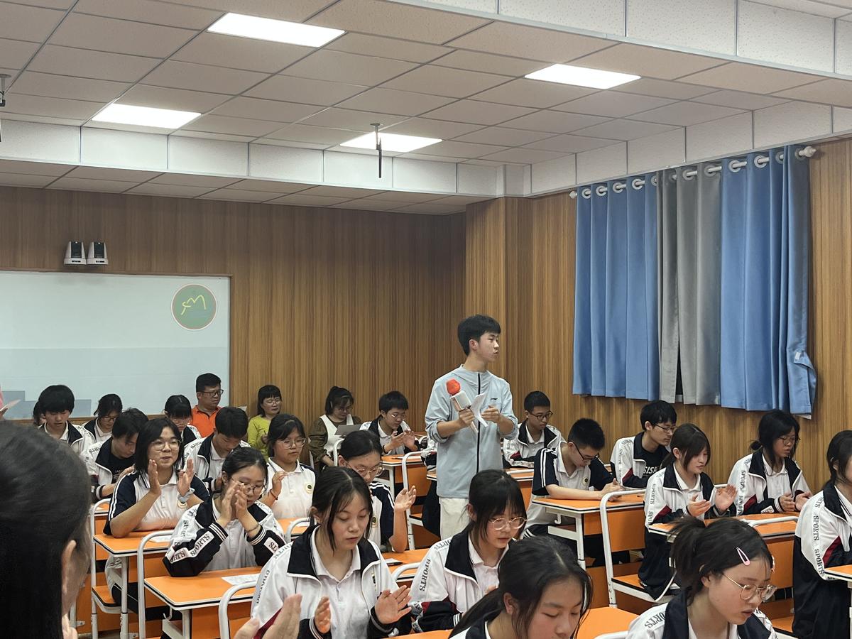 第6节课,小分队在高一(5)班教唱麻城民歌《苏区好风光》和麻城民谣《送别》。由研究生陈晨主讲,大一本科生邹烨灿教唱,课堂气氛极其活跃。一名听课的学生说:“学唱《苏区好风光》,让我们重新感受到麻城之美,而听了《送别》之后,让我的内心有想哭的感觉。”