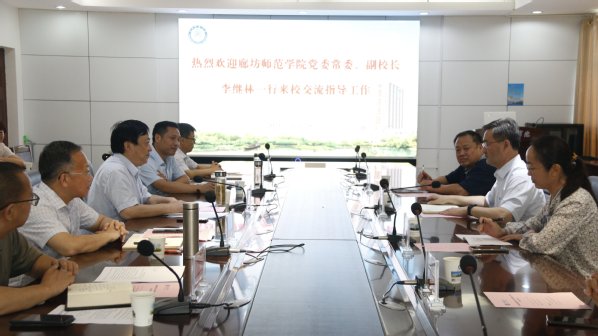 本网讯 6月20日下午,廊坊师范学院党委常委、副校长李继林一行来我校交流座谈,校党委副书记王基家出席并主持座谈会。