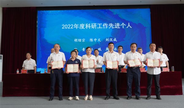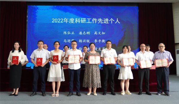 校党委副书记陈朝阳宣读了2022年度科研工作先进集体和先进个人表彰决定。化学化工学院、生物与农业资源学院、计算机学院、机电与智能制造学院、商学院、美术学院6个单位被授予2022年度科研工作先进集体荣誉称号,陈弘正等15名同志被授予2022年度科研工作先进个人荣誉称号。