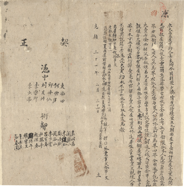 本网讯 近日,我校3件珍贵的历史档案已经完成抢救性修复,以崭新的面貌重回我校。这3件档案分别是清光绪三十一年(1905年)房屋买卖契约、1952年黄州镇人民政府关于前述房屋买卖契约的验契凭照,以及1948年朱衣巷房屋买卖契约。