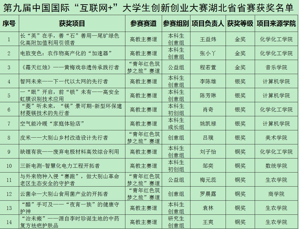 本网讯 7月30日,为期两天的第九届中国国际“互联网+”大学生创新创业大赛湖北省复赛在湖北工业大学落幕。经过激烈角逐,我校共获得金奖3项,银奖5项,铜奖6项。