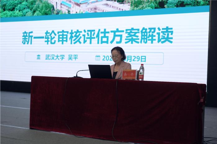 武汉大学吴平教授作《新一轮审核评估方案解读》、湖北省教科院李友玉研究员作《本科教育教学审核评估推进实务》专家报告。