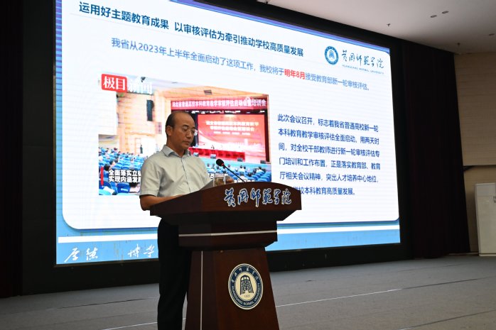 夏庆利对《黄冈师范学院本科教育教学审核评估评建方案》内容进行说明并作出工作布置。