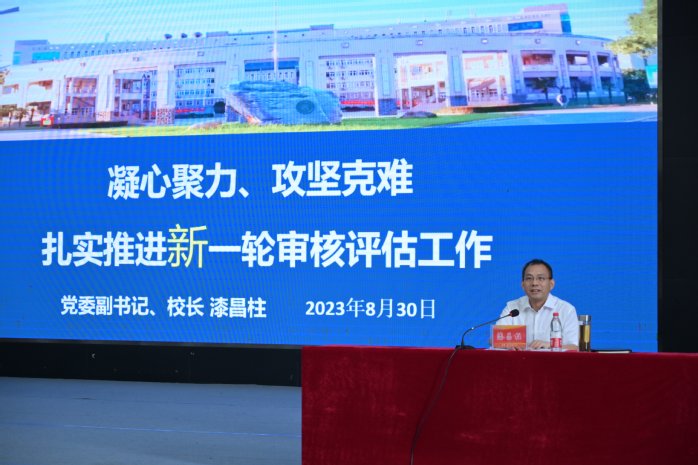 漆昌柱在题为《凝心聚力、攻坚克难,扎实推进新一轮审核评估工作》的专题报告中强调,新一轮审核评估是实现党和国家确定的目标任务的迫切需要,是推动学校加快高质量发展的迫切需要,要扎实推进新一轮审核评估的评建改工作,一是要落实好立德树人根本任务,二是要加强师德师风建设、深入推进教师评价改革,三是要深化教育教学综合改革,四是要建立现代大学质量保障体系,五是要扎实做好各项具体工作,同时要推动学科专业建设,筑牢内涵发展基础。