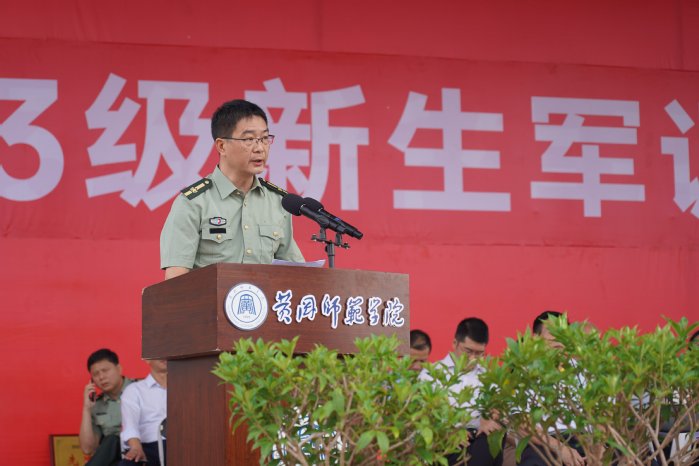 陈朝阳在军训总结中向全体教官表示崇高的敬意,向参与军训工作的教职工表示衷心的感谢,向刚刚跨入黄师的新同学表示热烈的祝贺和亲切的慰问。同时,他对全体新生提出了三点希望:一是发扬军队的优良传统和作风,严于律己,遵守学校各类规章制度,做文明学生,创文明班级,建文明校园;二是认真学习、踏实做人,珍惜军训经历,珍惜四年的学习生活,珍惜青春的美好时光,努力拼搏,奋发进取,完善自我;三是增强团队意识和集体观念,在今后的学习和生活中,互相帮助、团结友爱,共创和谐校园。