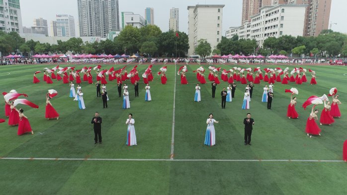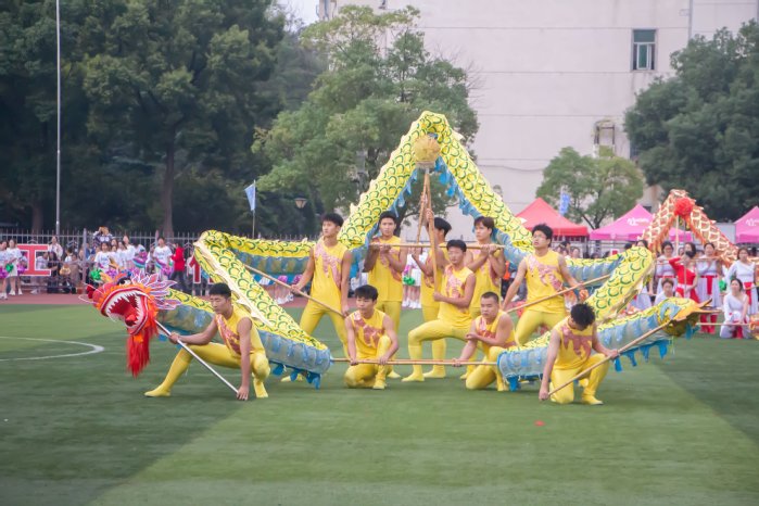 体育学院带来的舞龙舞狮节目锣鼓喧天,精彩绝伦;来自文学院(苏东坡书院)、商学院、物理与电信学院的同学们带来了青春洋溢的校园健身操表演,百人起舞,整齐划一;音乐学院、黄梅戏学院师生表演的歌舞《听见中国》,以小见大,感人肺腑。