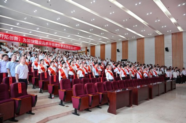 黄冈师范学院“两委”委员、中层干部、受表彰对象、党支部书记、离退休党员代表和新党员代表参加大会。