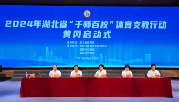 9月18日,2024年湖北省“千师百校”体育支教行动黄冈启动仪式在黄冈师范学院举行。湖北省体育局群体处副处长李祥,黄冈市体育事业发展中心主任余觅和党组成员、副主任王轶男,黄冈市教育局党组成员、副局长朱慧,黄冈师范学院党委常委、副校长夏庆利等出席活动。