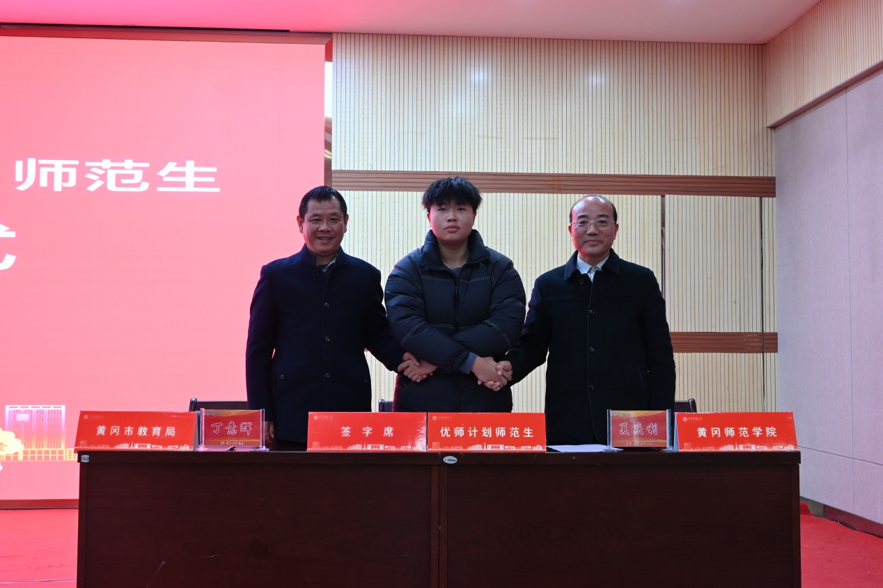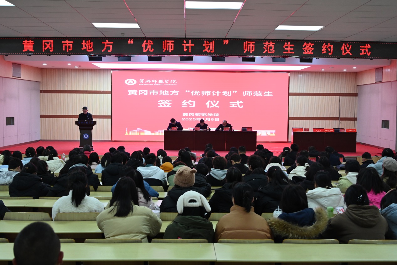 黄冈市教育局人事科、教师管理科负责人,黄冈市各县市区教育局分管领导,学校教务处、招生与就业处、教育学院(一多书院)负责人,地理与旅游学院、数学与统计学院、物理与电信学院、化学化工学院、生物与农业资源学院相关负责人,2024级黄冈市“优师计划”师范生,部分湖北省“荆楚优师计划”师范生参加签约仪式。