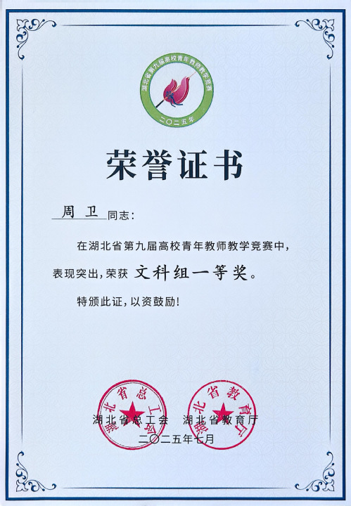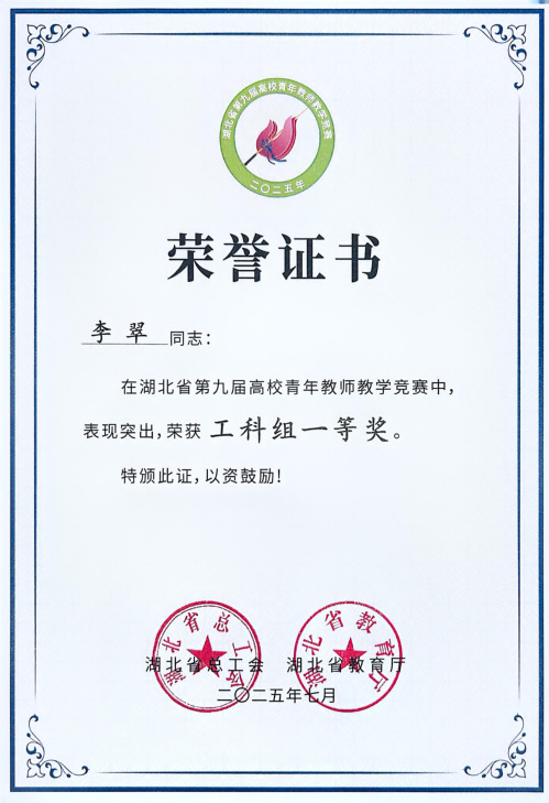 本网讯 7月10日—11日,湖北省第九届高校青年教师教学竞赛决赛在中国地质大学(武汉)举行,经过激烈的角逐,我校物理与电信学院青年教师李翠、传媒与影视学院青年教师周卫分别获得工科组、文科组一等奖。
