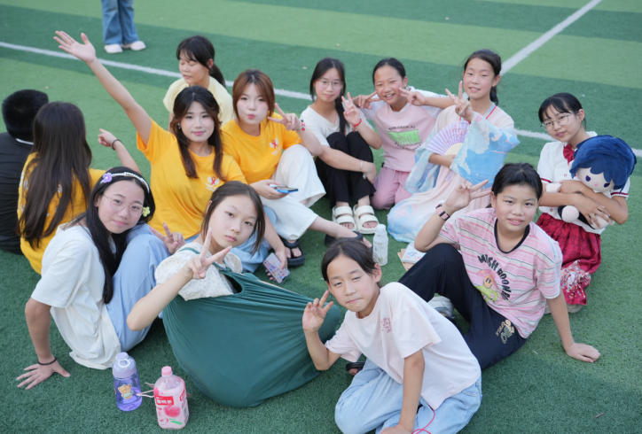 五是草地音乐节燃爆校园。7月11日,夕阳的余晖还未散尽,校园中央草坪上已经坐满了期待的身影。随着一阵欢快的音乐响起,首届“青春飞扬”草地音乐节正式拉开帷幕。“手绢传到谁手里,谁就要表演节目哦!”主持人话音刚落,一只彩色手绢就在人群中飞快传递。夜幕降临时,《我和我的祖国》的旋律响起,全体师生不约而同地站了起来,嘹亮而深情的歌声在校园上空回荡。