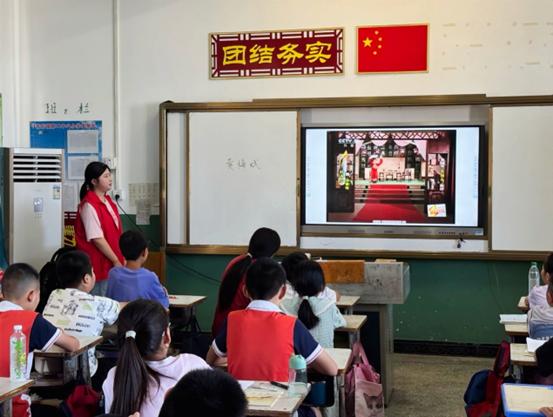 黄梅戏作为国家级非物质文化遗产,课程采用了“经典鉴赏+沉浸体验”模式。志愿者老师通过示范唱腔、身段教学,引导学生体验《天仙配》《女驸马》等剧目的艺术精髓。角色扮演、片段学唱等实践环节,让百年非遗焕发时代生机。