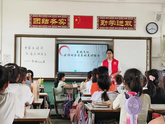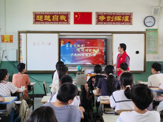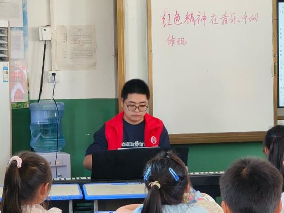 为深入贯彻立德树人根本任务,推动红色文化与美育实践深度融合,黄冈师范学院青春黄师服务队在暑期社会实践中为大别山区的少先队员们量身定做了一系列“音乐特色课程”。课程以“红色铸魂、艺术传承”为主线,聚焦音乐队课和传统文化两大板块,通过多元艺术载体将革命精神转化为可感可知的青春语言,让红色基因扎根青少年心灵土壤,奏响新时代青春强音。