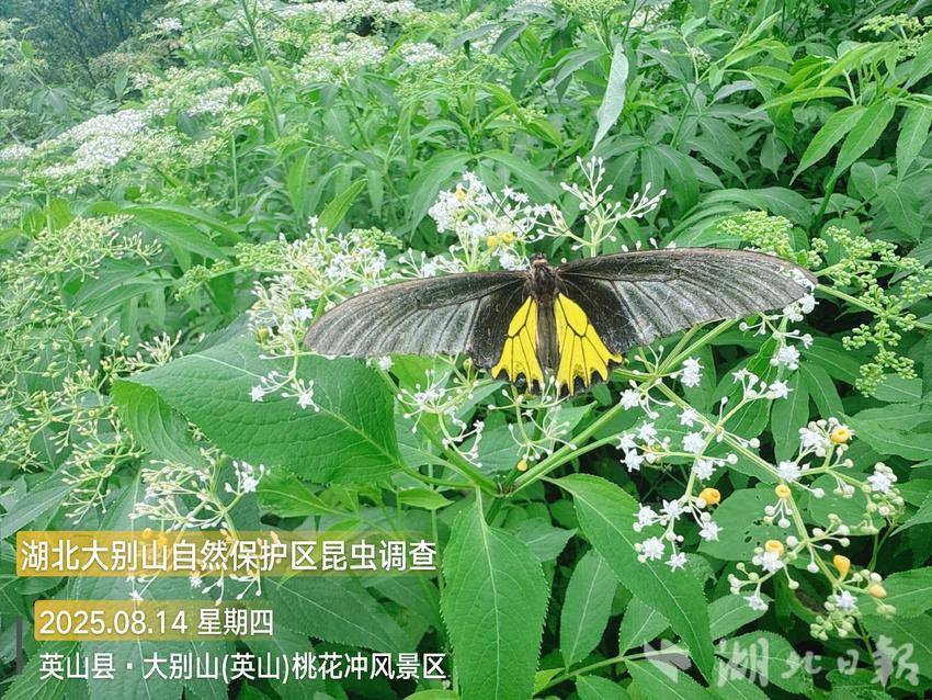近日,湖北大别山国家级自然保护区英山桃花冲园区传来喜讯:黄冈师范学院大别山动植物多样性与保护团队在该区域开展昆虫本底调查时,首次记录到国家二级重点保护野生动物——金裳凤蝶。这一发现不仅为桃花冲园区增添新记录物种,更充分印证当地生态环境的优质性和保护实效。