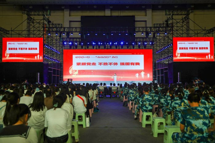 活动由中共黄冈市委教育工委、市委宣传部指导,黄冈师范学院主办。黄冈市委相关部门负责人、在黄高校领导、思政课教师代表及我校2025级3200余名新生现场参与,全市大中小学校3900名思政课教师以及高校和中职学校15万名学生通过线上平台同步收看。