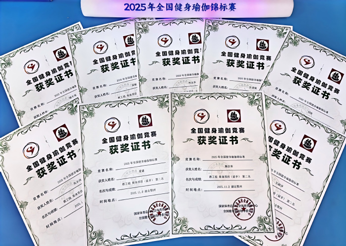 本网讯 10月31日至11月2日,由国家体育总局社会体育指导中心主办的2025年全国健身瑜伽锦标赛在鄂州大剧院举行。我校教工瑜伽队凭借出色的技艺与团队精神,获得教工组集体项目(徒手)第二名。