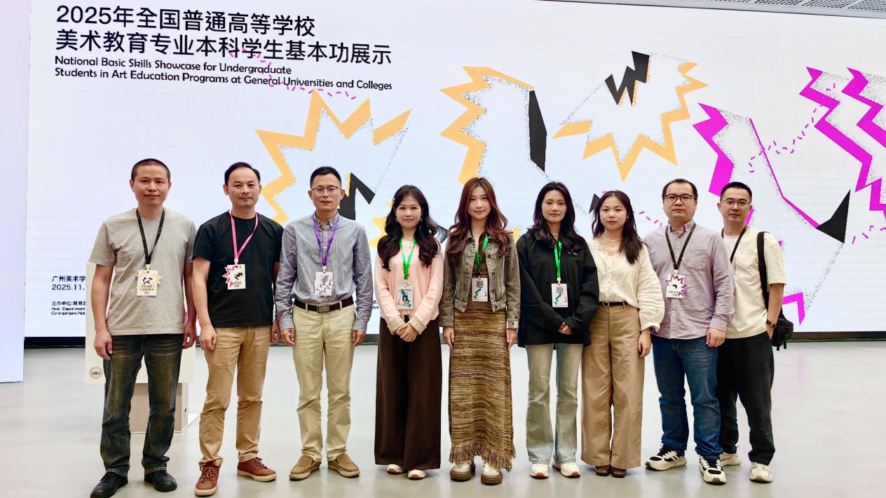 “全国普通高等学校音乐教育专业、美术教育专业本科学生和教师基本功展示”是教育部主办的艺术教育本科学生基本功比赛中层次最高、规模最大、影响最广的全国性赛事,每两年举办一次,参赛学校由各省教育厅推荐。该项赛事自2018年启幕以来,湖北省教育厅在每一届比赛中都推荐我校美术教育专业师生参赛。2025年全国普通高等学校美术教育专业本科学生基本功展示活动由广州美术学院承办,活动为期四天,涵盖教学展示(微课)、现场教学展示(说课)、专业技能展示、审美和人文素养展示及社会实践等多个项目,来自全国31个省(自治区、直辖市)和新疆生产建设兵团86所高校的258名学生、86名教师参加了本次活动。