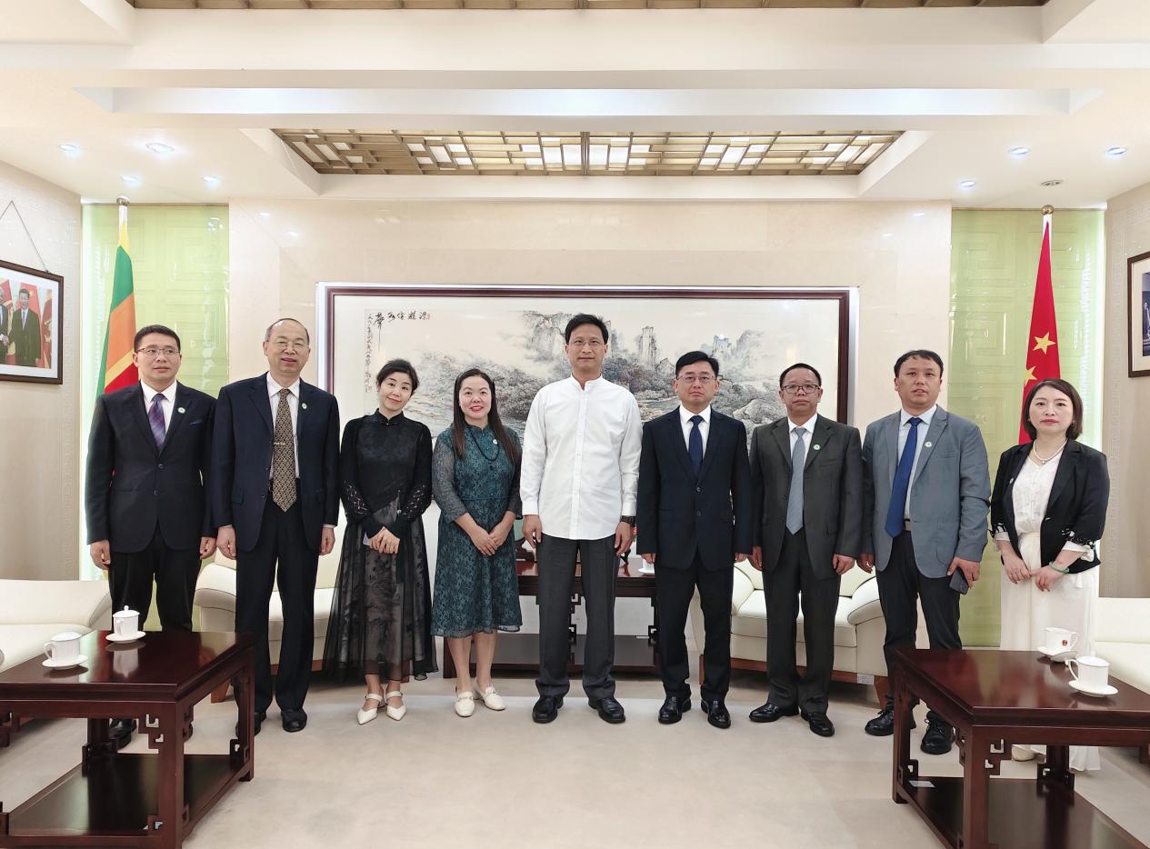 会后,我校代表团拜访了中国驻斯里兰卡大使馆,受到戚振宏大使与吉莉莉参赞亲切接见。胡志华介绍了学校发展概况,重点汇报了孔子课堂建设情况,并表示学校将积极与斯各有关方面拓展多领域的交流合作,为巩固中斯友好关系作出积极贡献,在“一带一路”建设中彰显黄师作为。戚振宏大使介绍了斯里兰卡国情与中斯关系等。他立足“一带一路”建设的重要性,强调对斯研究需进一步深化拓展,表示将全力支持我校提出的各项工作请求,并将加大对孔子课堂学员申请中国政府奖学金的支持力度,加快我校与萨伯勒格穆沃大学的深度交流合作。