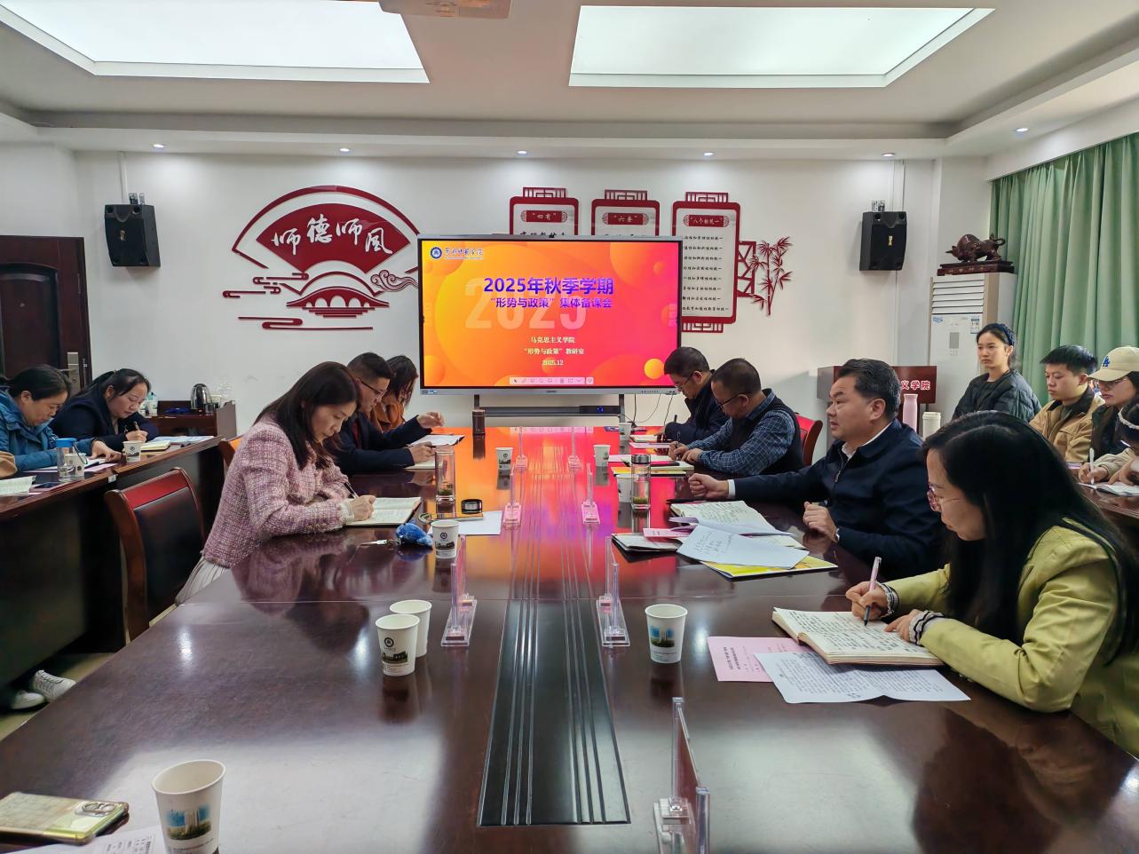 本网讯 12月11日下午,学校举行2025年秋季学期“形势与政策”课集体备课会。校党委书记陈向军,校党委常委、马克思主义学院党委书记余晚霞出席备课会。