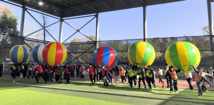本次运动会以“携手共进 趣味同行”为主题,设有“龟兔赛跑、雷霆战鼓、八戒快跑、鸿运彩球”四项集趣味性、协作性与挑战性于一体的团体项目。赛场上,教职工们化身奋力拼搏的运动员。他们同心协力操控“战鼓”颠球,默契配合完成“八戒”接力,肩扛“彩球”奔跑冲刺……欢笑声、加油声、喝彩声此起彼伏,汇成了欢乐的海洋。