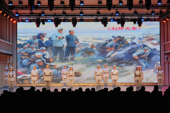 音乐党课以“红旗漫卷大别山”为主题,以新民主主义革命为脉络,通过9首红色歌谣串联“先驱播火,唤起工农跟党走”“不胜不休,苏区红军勇战斗”“孤悬敌后,抗日劲旅歼倭寇”“勇当前锋,千里跃进利剑飕”四个篇章,采取“听红歌—学党史—悟思想—见行动”的内在逻辑,以艺术的形式再现“大别山28年红旗不倒”波澜壮阔的革命历史,生动诠释了大别山精神的核心内涵。