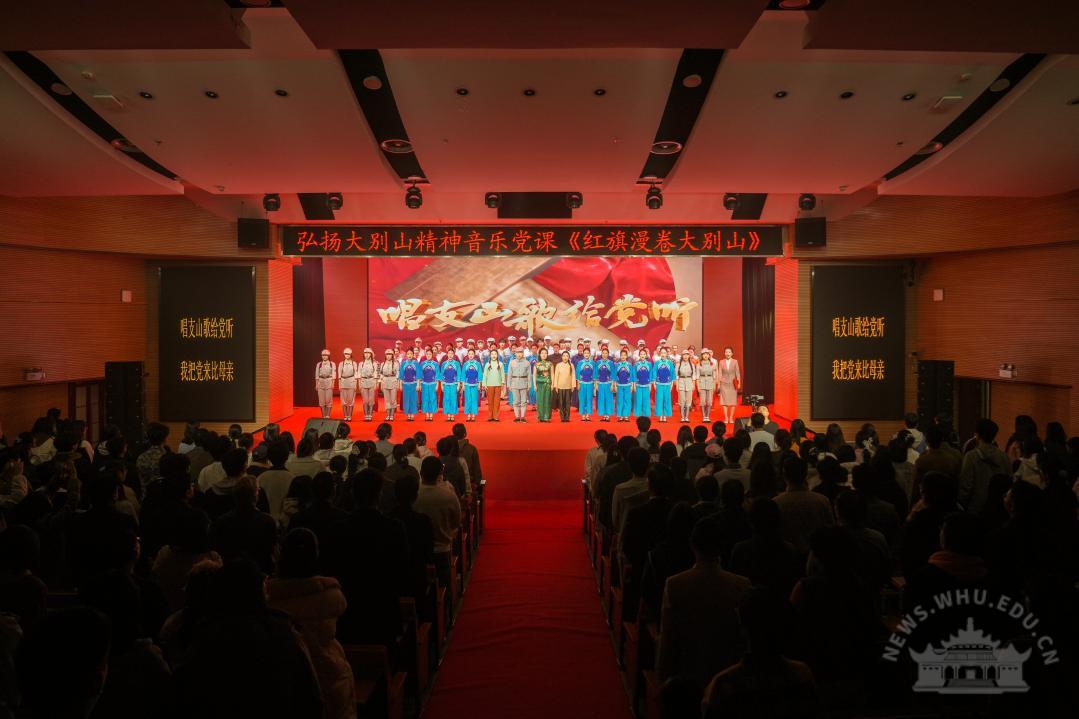 3月14日,武汉大学人文馆内座无虚席,弘扬大别山精神音乐党课《红旗漫卷大别山》在此拉开帷幕。