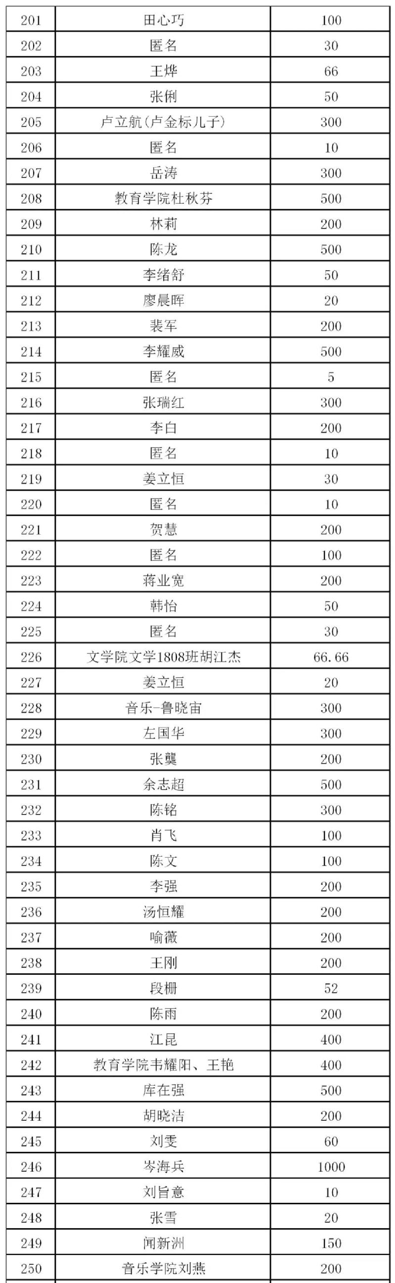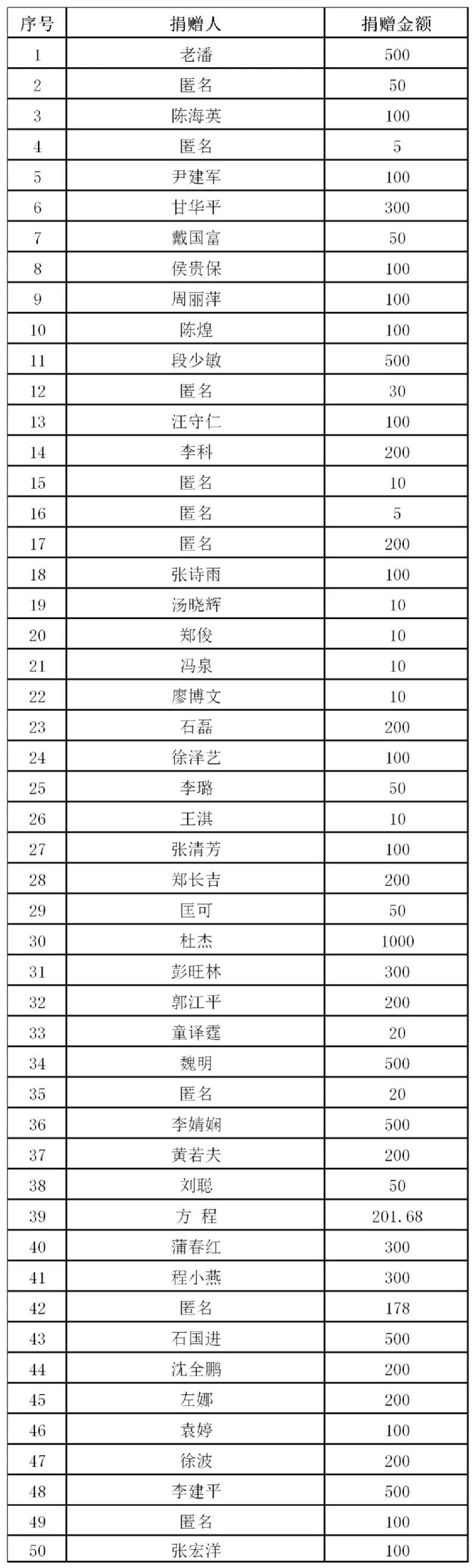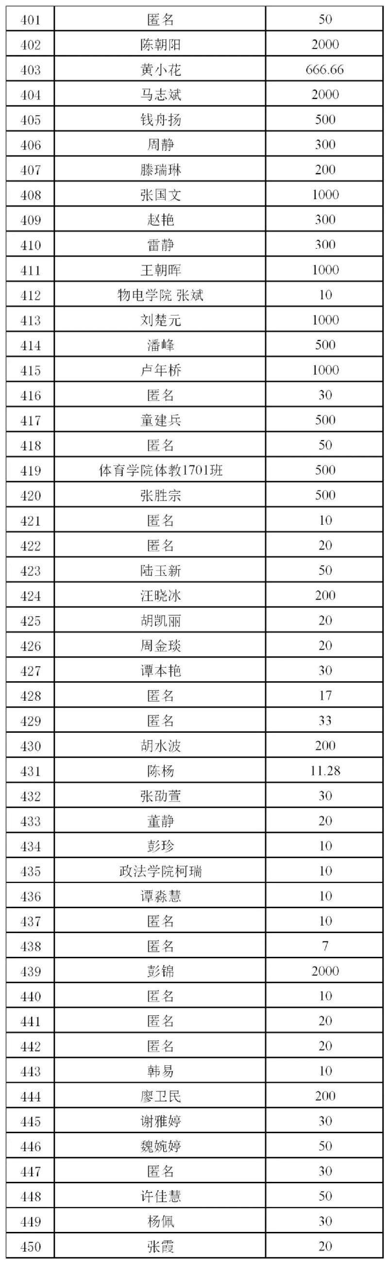 再次感谢广大校友和社会爱心人士善举!