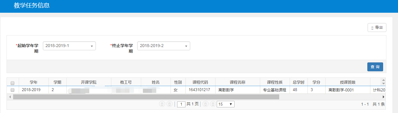 “信息查询”——“教学任务信息”可以查询历年的教学任务,并可以显示所带课程的课程号。