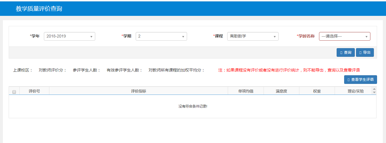 “信息查询”——“教学质量评价查询”,可查询学生评价结果,如下图。